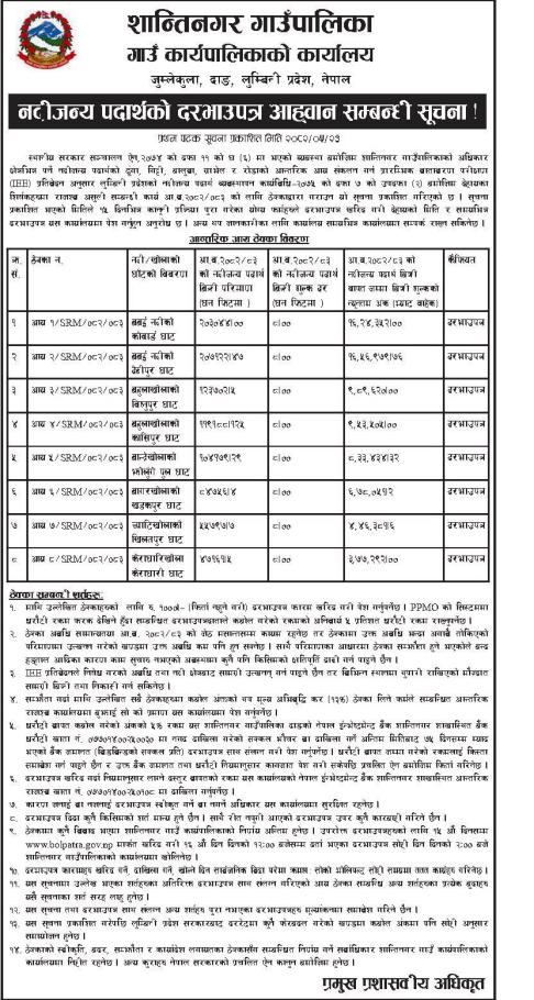 नदीजन्य पदार्थको दरभाउपत्र सम्बन्धी सूचना ।।