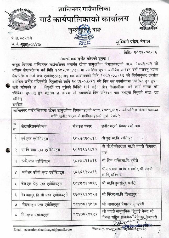 » लेखा परिक्षक छनौट गरिएको सूचना