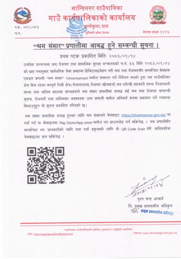 श्रम संसार प्रणालीमा आबद्ध सम्बन्धी सूचना ।।