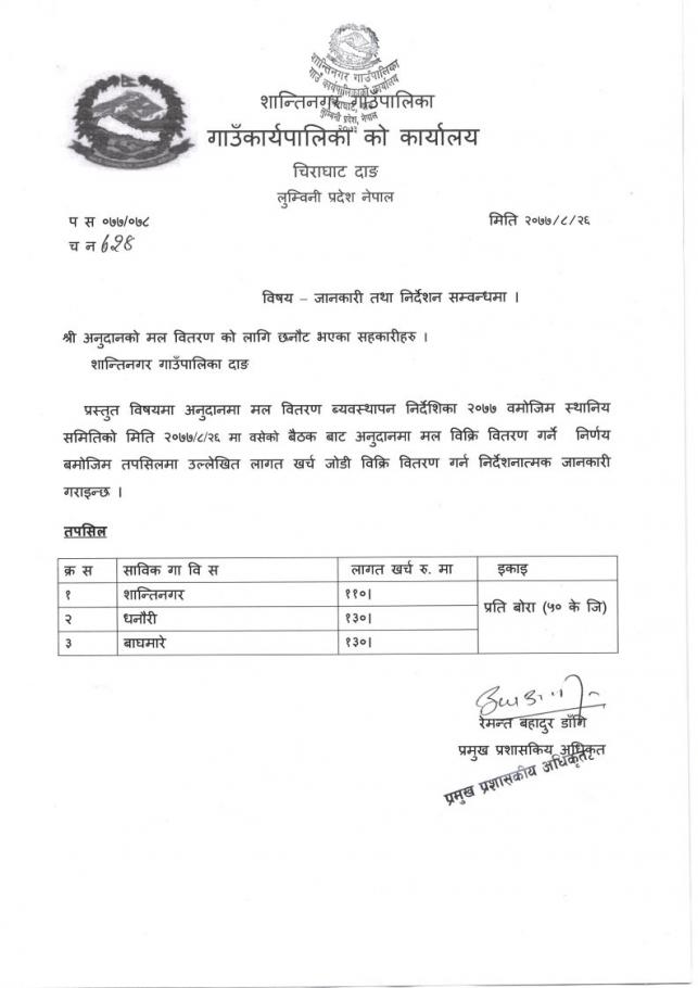 अनुदानको मल वितरणका लागि छनौट भएका सहकारीहरुको लागि जानकारी तथा निर्देशन