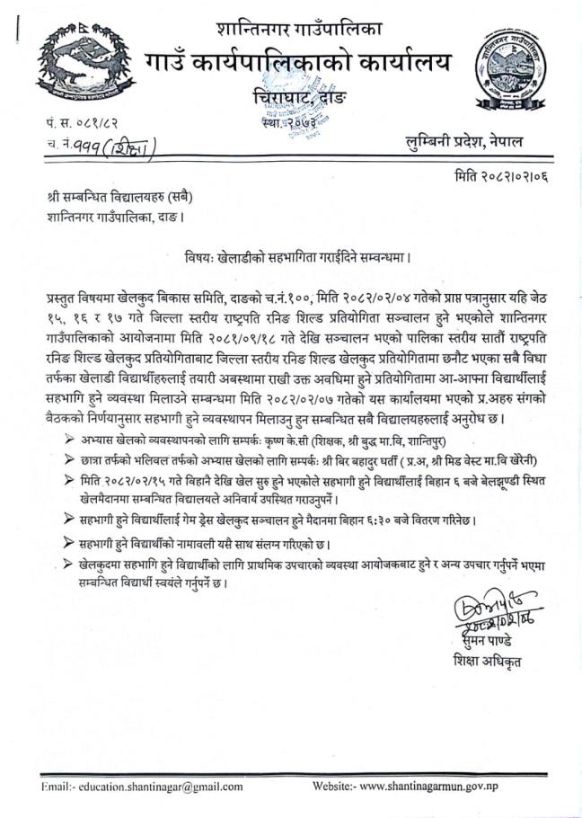 » खेलाडीको सहभागीता गराईदिने सम्बन्धमा
