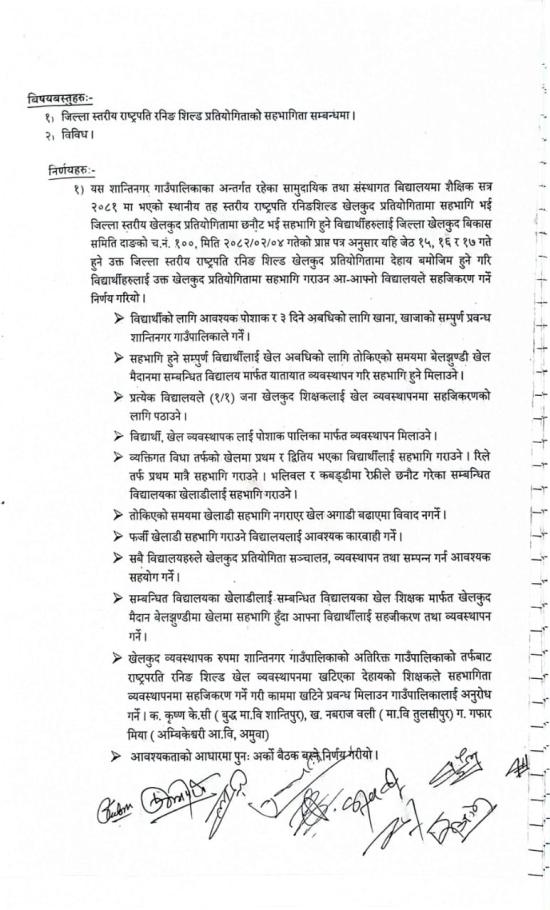 आ.व. २०७४/०७५ को लागि कार्यपालिकाबाट निर्णय भएका योजनाहरुको विवरण