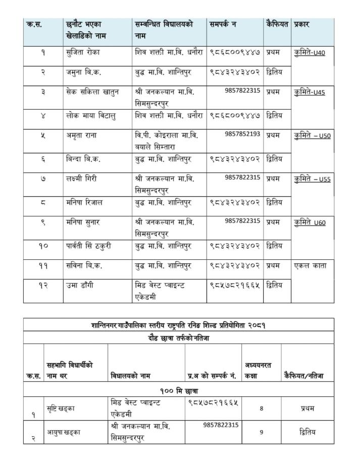 खेलाडीको सहभागीता गराईदिने सम्बन्धमा