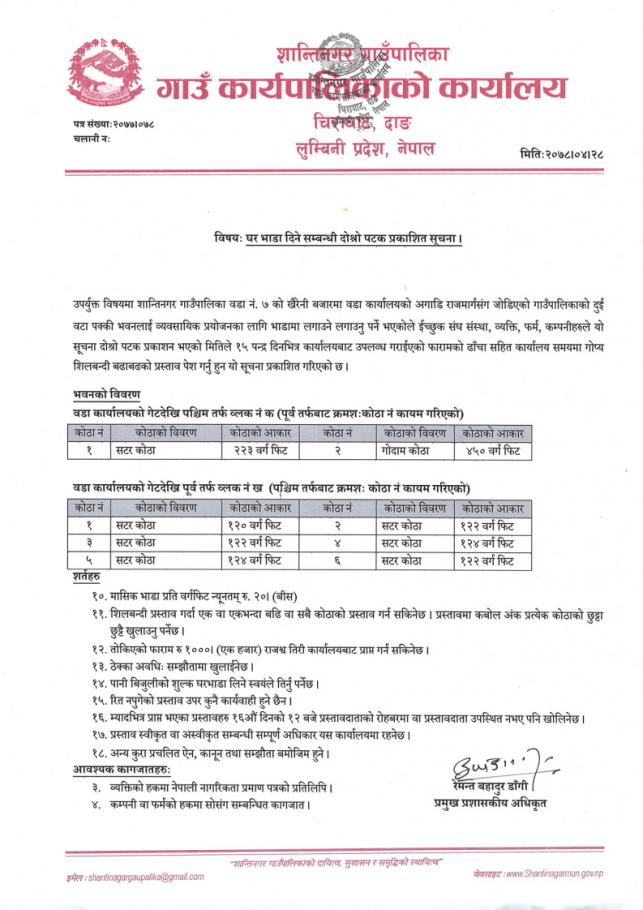 घर भाडा दिने सम्बन्धि दोस्रो पटक प्रकाशित सूचना ।।