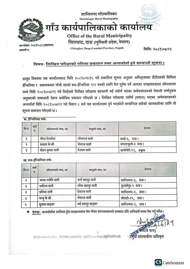 » लिखित परीक्षाको नतिजा प्रकाशन तथा अन्तर्वार्ता हुने सम्बन्धी सूचना।।