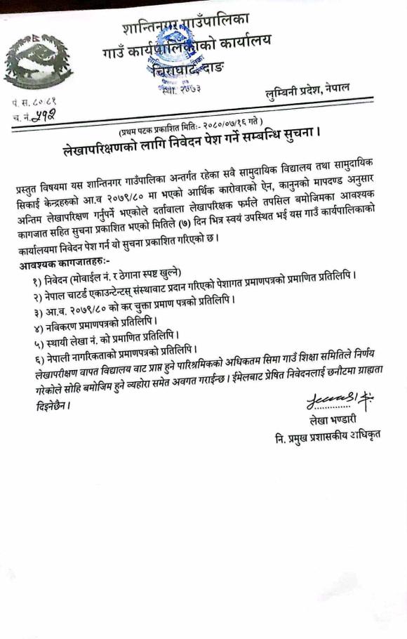 लेखा परिक्षणको लागि निवेदन पेश गर्ने सम्बन्धि सूचना ।