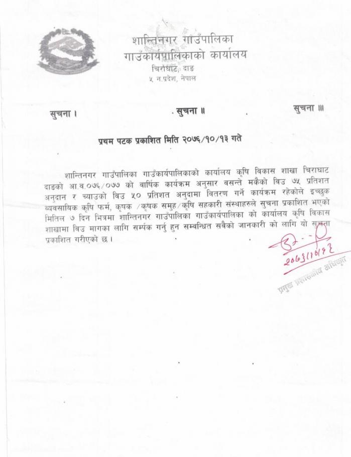 ५० प्रतिशत मुल्य अनुदानमा गहुँको उन्नत वीउ माग गर्ने सम्बन्धि सूचना ।।