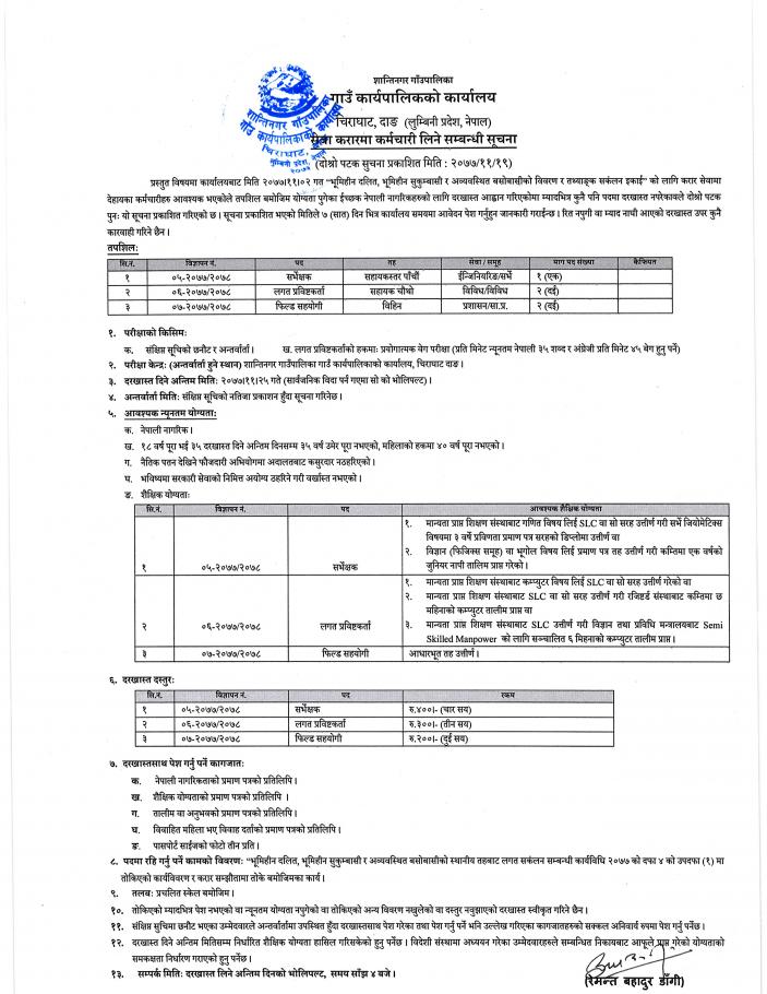 सेवा करारमा कर्मचारी लिने सम्बन्धी सूचना