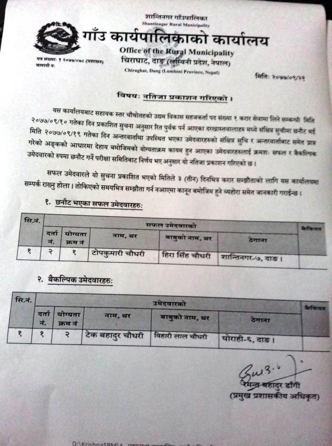 नतिजा प्रकाशन गरिएको सम्बन्धमा