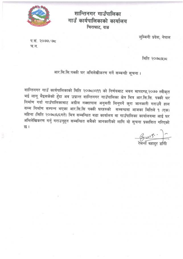 » आर.सि.सि पक्की घर अभिलेखीकरण गर्ने सम्बन्धी सूचना ।।